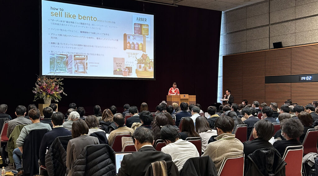 また、アメリカで実際に成功している園芸店の事例も紹介されました。植物をテーマにしたビンゴ大会や、ハウス内でのヨガイベントなど、他にはないユニークな取り組みが来店動機を生み出している点が非常に印象的でした。